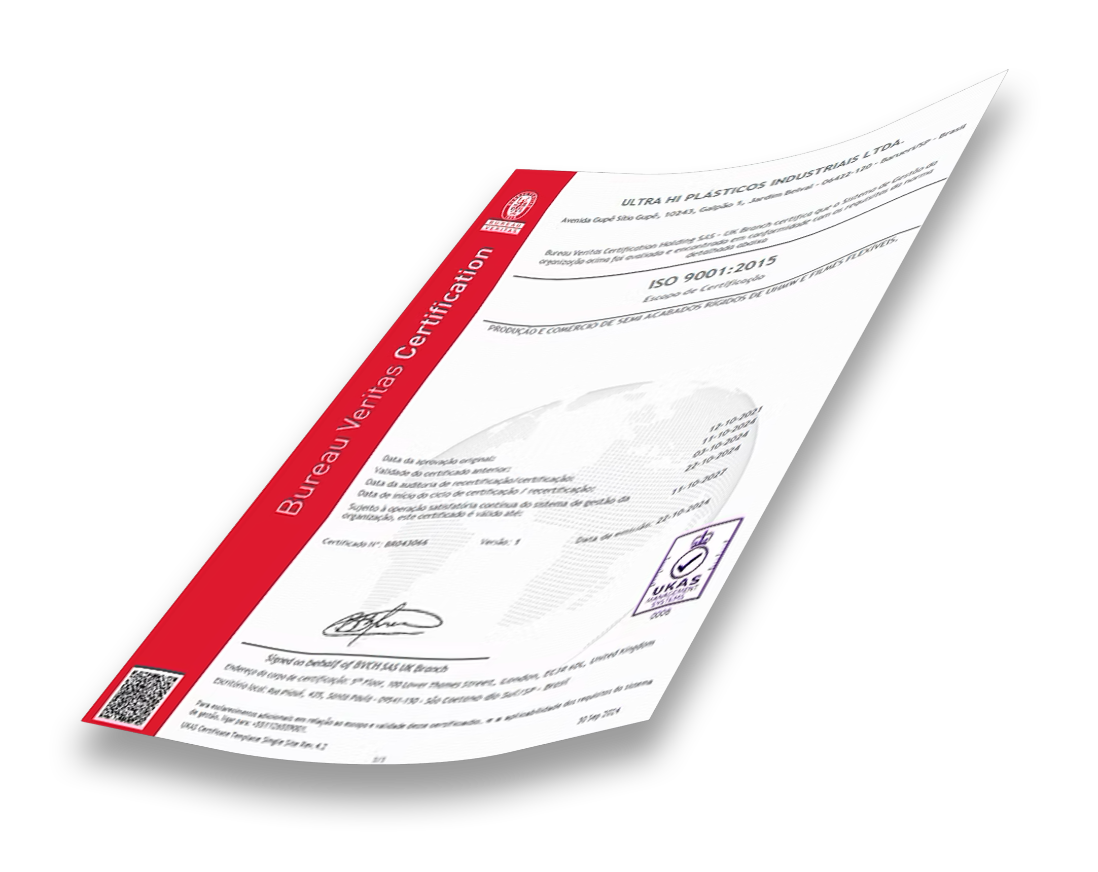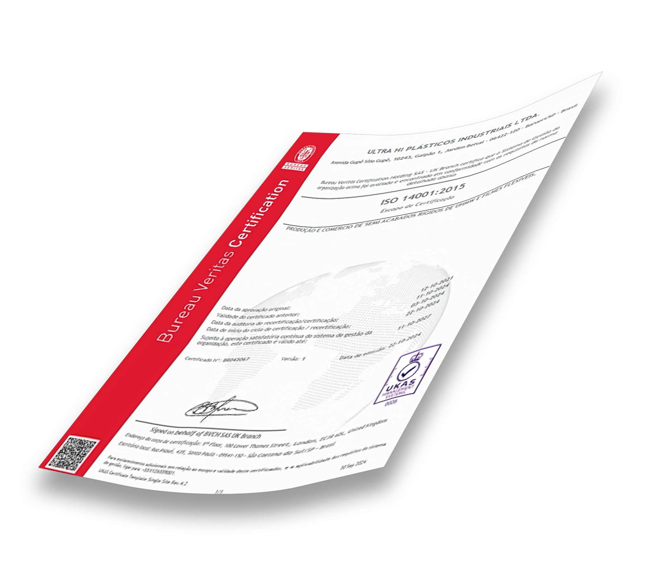 A ISO 14001:2015 comprova que a UltraHi Plásticos Industriais Ltda. adota um Sistema de Gestão Ambiental eficaz, com práticas que reduzem impactos ambientais e promovem o uso responsável dos recursos naturais.
